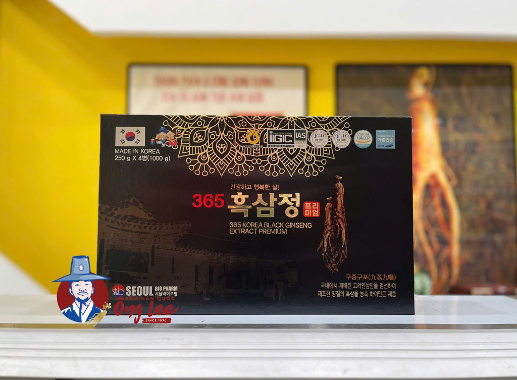 Cao Hắc Sâm 365 Seoul Bio Pharm Hàn Quốc 4 Lọ x 250g là sản phẩm thượng hạng của thương hiệu nổi tiếng Seoul Bio Pharm ra mắt với dòng sản phẩm Cao hắc sâm 365 tại Hàn Quốc và Việt Nam với mức giá cạnh tranh trên thị trường vẫn đảm bảo được chất lượng với 100% tinh chất hắc hồng sâm hàm lượng Saponin cao với đầy đủ Rb1, Rg1 và Rg3.