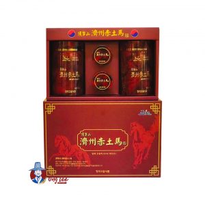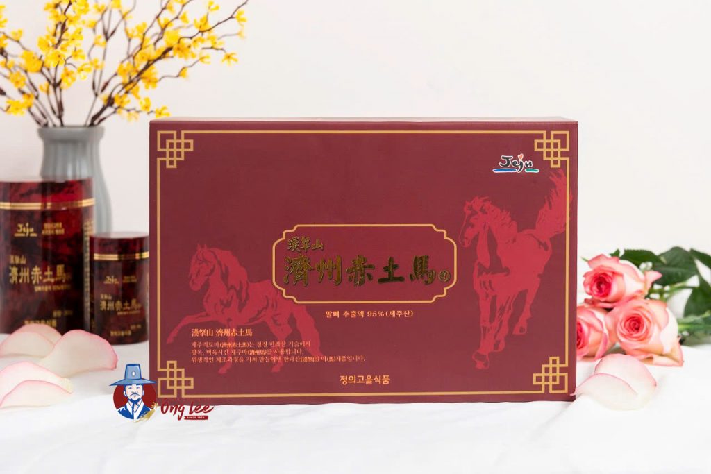 – Đây là 1 trong những sản phẩm rất nổi tiếng tại Hàn Quốc, được làm từ xương ngựa lùn đảo Jeju, với bột nhân sâm và một số loại thảo dược chỉ có thể tìm thấy tại đảo Jeju – Hàn Quốc. Sử dụng sản phẩm giúp ngăn ngừa các vấn đề về loãng xương, xương khớp.